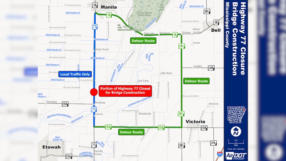 Manila, Arkansas – Drivers in Mississippi County are being advised to prepare for a long-term road closure that will significantly impact travel in the area for several months.